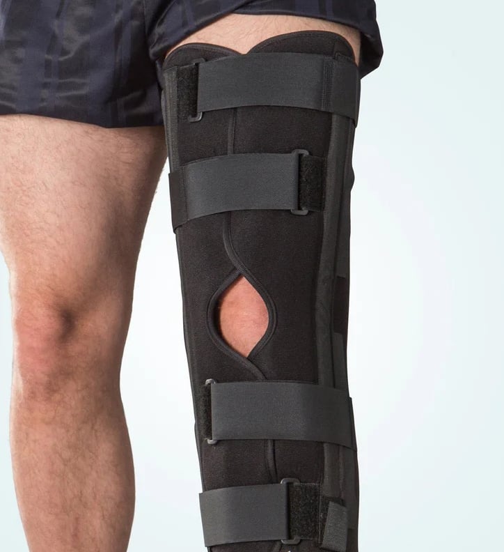 The medial and lateral metal stays of the Smart panel splint give the knee more stability and support.